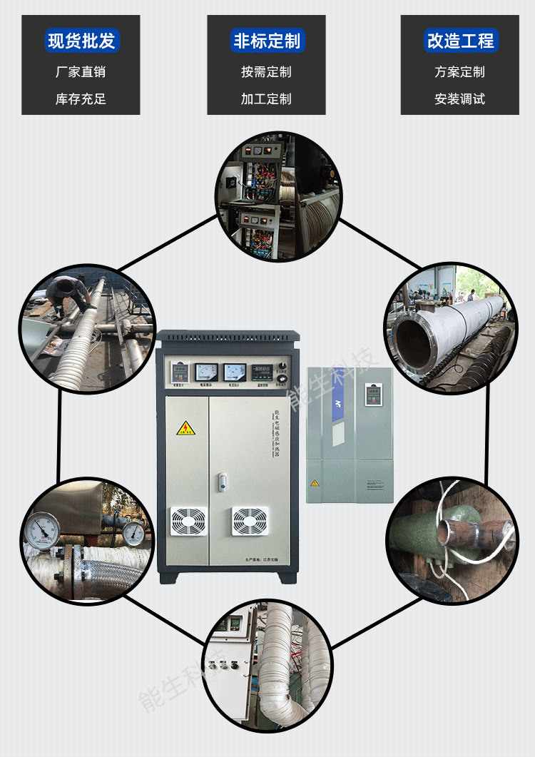 无锡市能生科技有限公司多年生产及各行业电磁加热改造经验,感应加热电源配套不同材质、形状的管道电磁加热改造提供从技术咨询到设计、改造、安装、调试等一条龙服务。