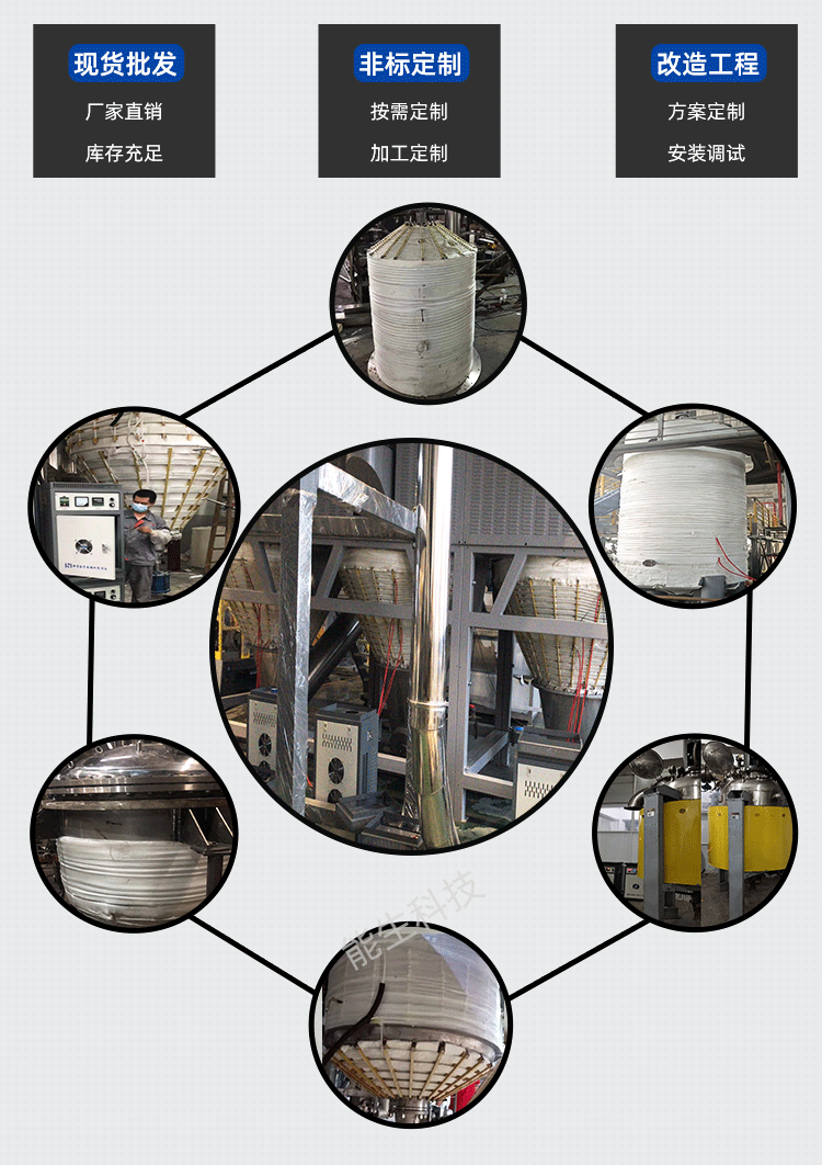 无锡市能生科技具有多年生产及各行业电磁加热改造经验,感应加热电源配套反应釜电磁加热改造,提供从技术咨询到设计、改造、安装、调试等一条龙服务。不需要跟反应釜产生直接接触,预热时间短,利用电磁感应原理使反应釜的物料本身自行发热,通过反应釜为载体,将热量传到料筒或反应釜上,这种加热方式避免大部分热量散失在空气中,提高了热效率。