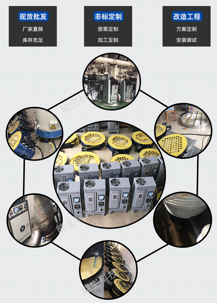 无锡市能生科技多年生产及各行业电磁加热改造经验,扩散泵专用节能电磁加热器配套改造,提供从技术咨询到设计、改造、安装、调试等一条龙服务。厂家直供,外观精美,安装方便。加热线圈盘尺寸可定制,固定耳朵可按用户需求。PID自动智能控温。内置多个线圈散热风扇专用屏蔽罩,减少磁场辐射。备件备机及时响应,保障售后力度。